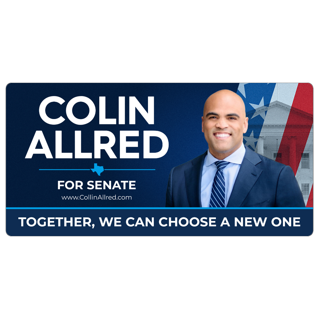Take a prominent role in supporting Colin Allred in the 2024 election with street signs that command attention and inspire. Contact us today to order your custom 4×8 street signs and amplify your campaign’s presence in your community!